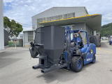 コンクリート二次製品の製造工場において、生コンの運搬作業および型枠への投入作業で活躍するフォークリフト搭載用アタッチメントです。バッチャーより供給された大量のコンクリートを小分けして型枠に流し込む際に活躍します。アタッチメントのホッパー底部の傾斜面にスパイラル軸を装備し、その回転駆動により生コンの成分分離を回避し、コンクリートの品質を維持しながら定量排出する独特の機構となっております。昭和50年代の発売以来、殆ど形を変えることなく、多くのお客様にご愛用いただいているロングセラー商品です。